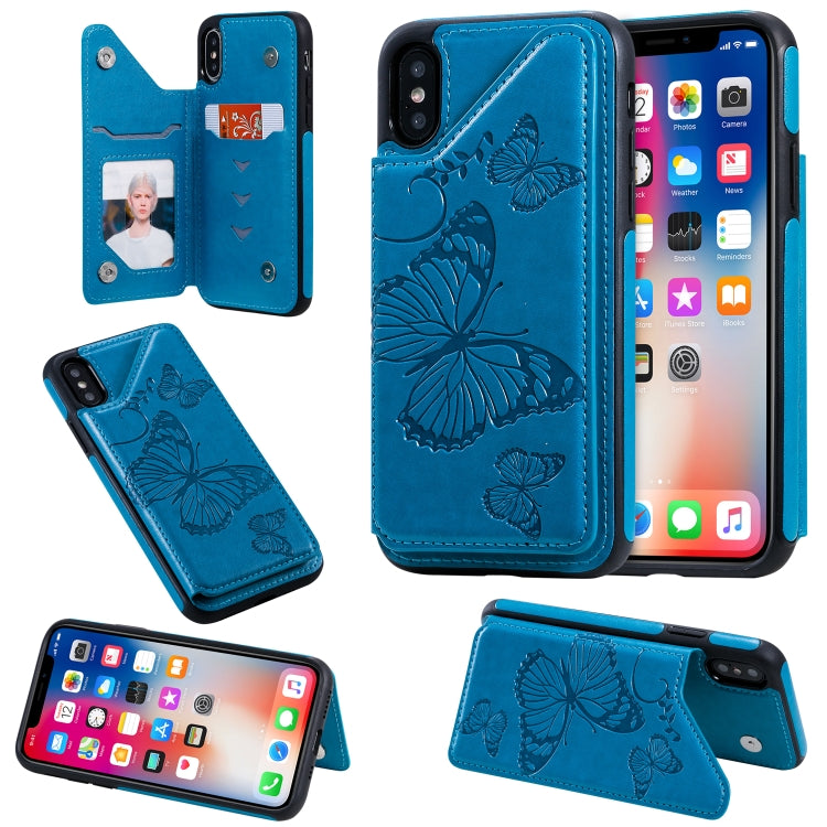 Funda Protectora iPhone X y Xs Estampado Mariposas Soporte Ranuras Tarjetas Marco Fotos (Azul)