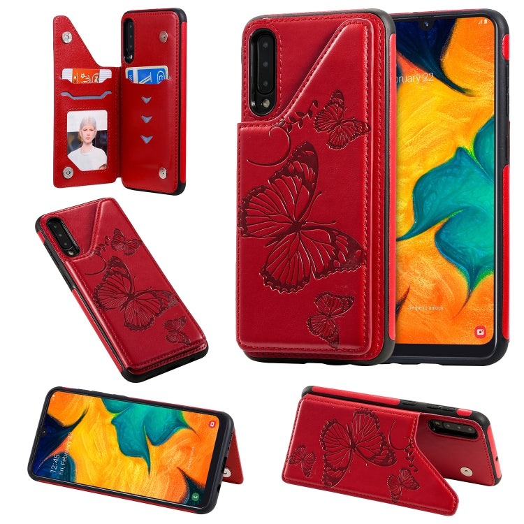 Funda Protectora Galaxy A50 Patrón Mariposa Soporte Ranuras Tarjetas Marco Fotos (Rojo)