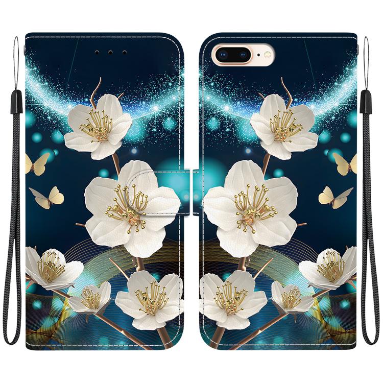 Funda de Cuero iPhone 7 Plus/8 Plus Dibujo Colores Textura Cristal (Plumas de Mariposa Blancas)
