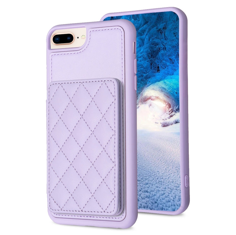 Funda para iPhone 8 Plus 7 Plus Bf25 Square Plaid Porta Tarjetas (Púrpura)