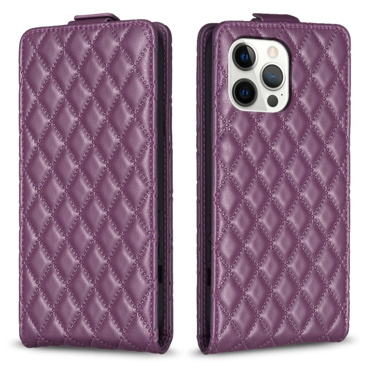 Funda para iPhone 12 Pro Max Diamond Lattice de Cuero con Tapa Vertical (Púrpura Oscuro)
