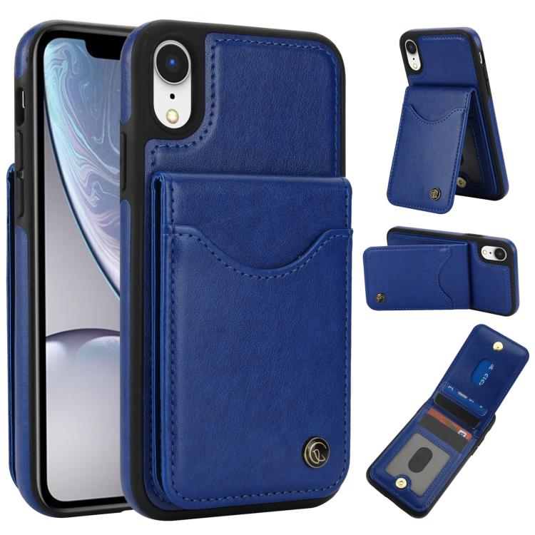Funda de Cuero con Tapa Vertical para iPhone Xr Awquer con Tarjetero (Azul)