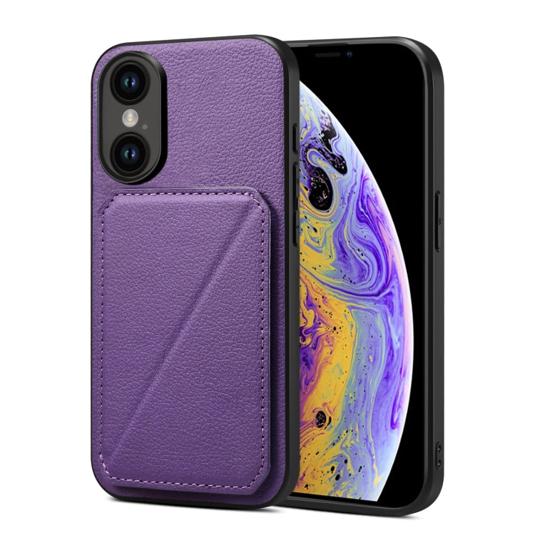 Funda Trasera para iPhone Xs / X de Piel de Becerro de Imitación con Soporte (Púrpura)
