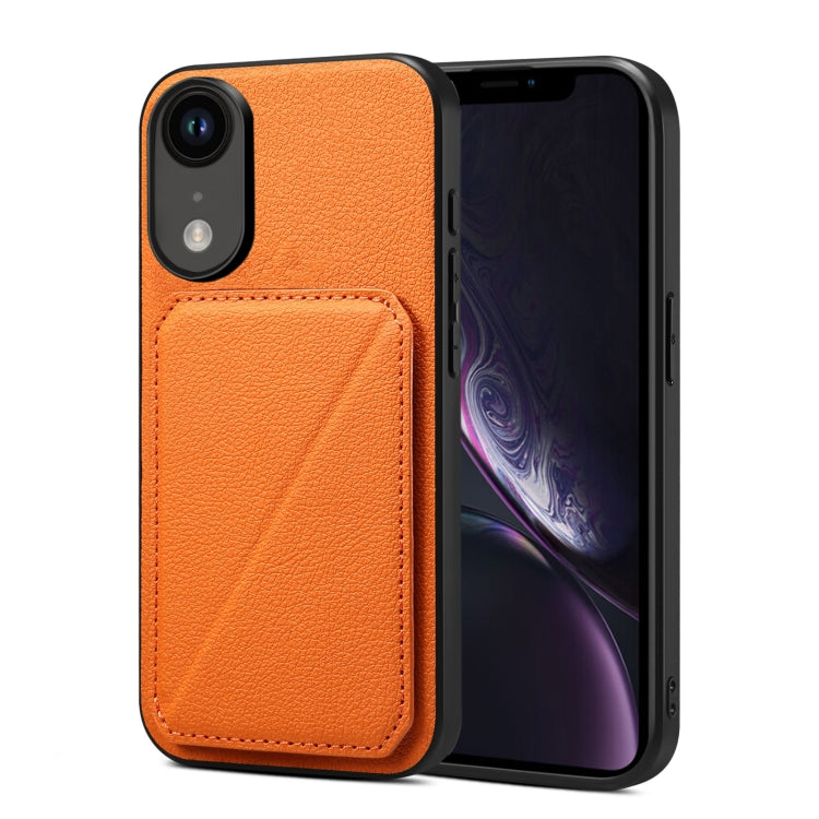 Funda Trasera para iPhone Xr de Piel de Becerro de Imitación con Soporte (Naranja)