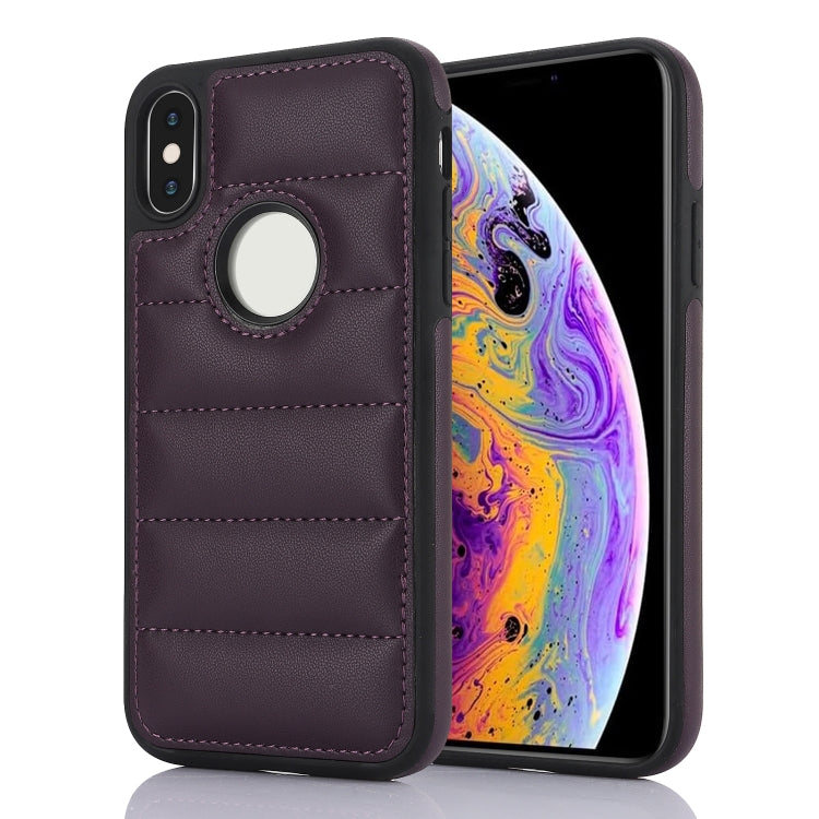 Funda para iPhone Xs Max Empalme Costura Caja de Teléfono de PU con Recorte (Púrpura)