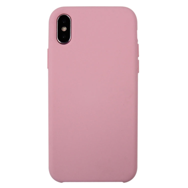 Funda Protectora Trasera para iPhone X Xs Pure Color Liquid Silicone + PC Dropproof (Rosa Claro)