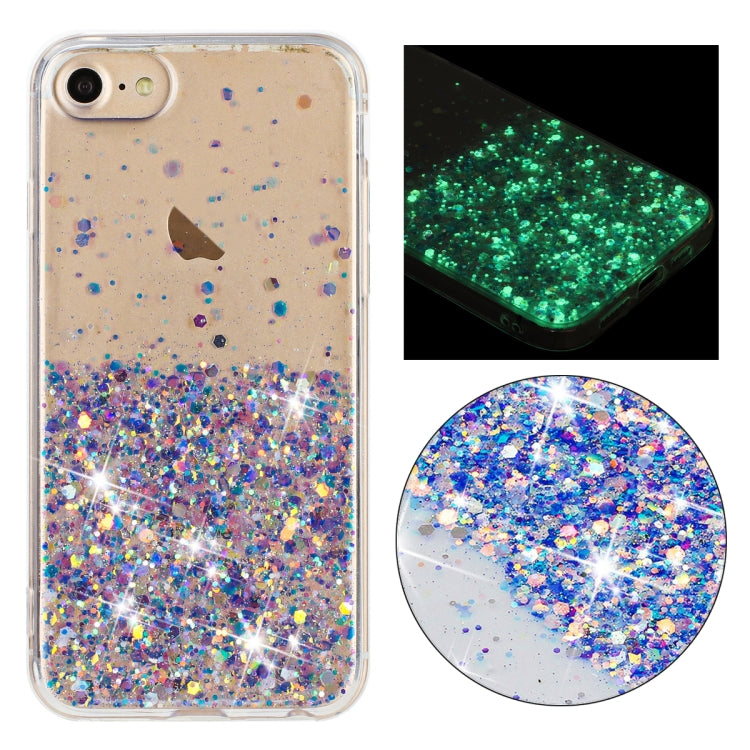 Funda para Teléfono TPU iPhone 8/7 con Polvo de Brillo Noctilucente y Marco Transparente (Púrpura)