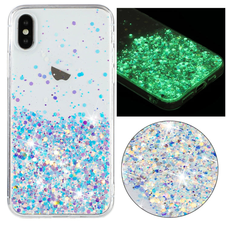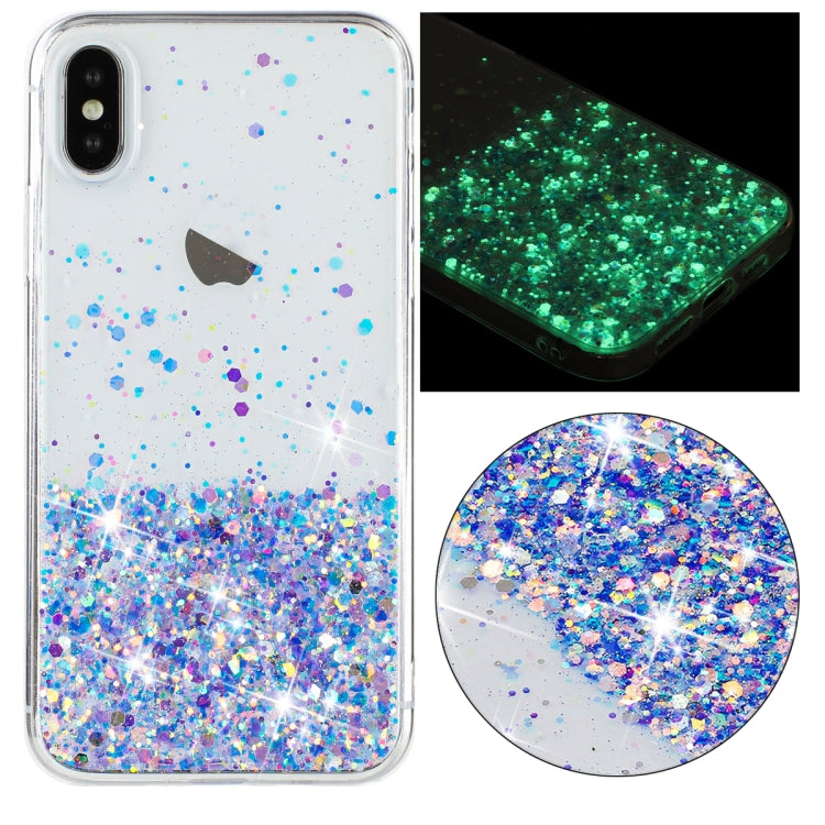 Funda para Teléfono iPhone Xs Max Marco Transparente Noctilucent Glitter Powder TPU (Púrpura)
