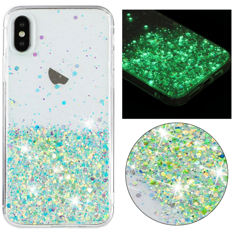 Funda para Teléfono TPU iPhone X con Polvo de Brillo Noctilucente y Marco Transparente (Verde)