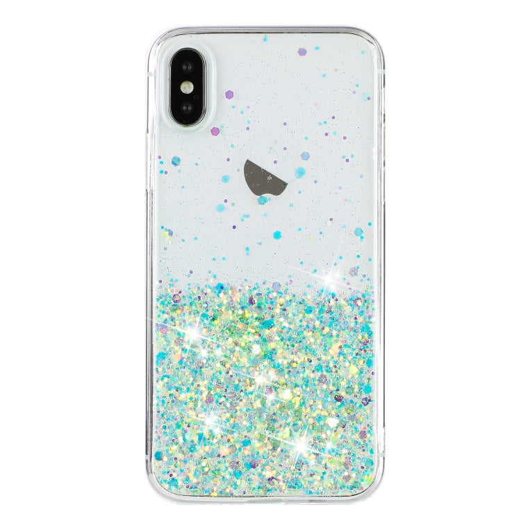 Funda TPU con Marco Transparente y Polvo Brillante Noctilucente para iPhone X (Azul)