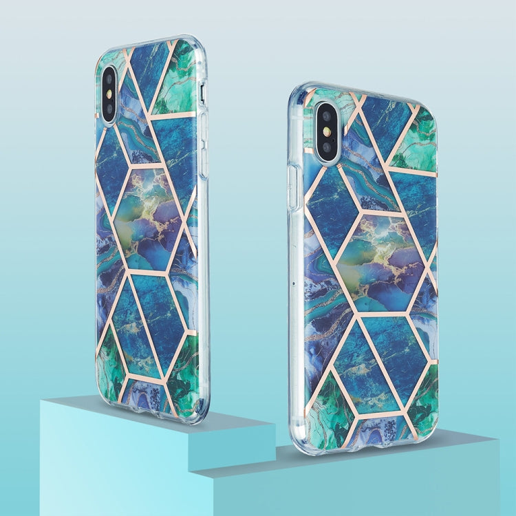 Estuche Protector TPU iPhone X Xs Patrón Mármol Galvanoplastia 3D (Verde Azul)