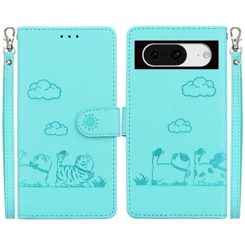 Funda de Cuero Rfid para Google Pixel 8 Pro con Diseño de Gatos (Verde)