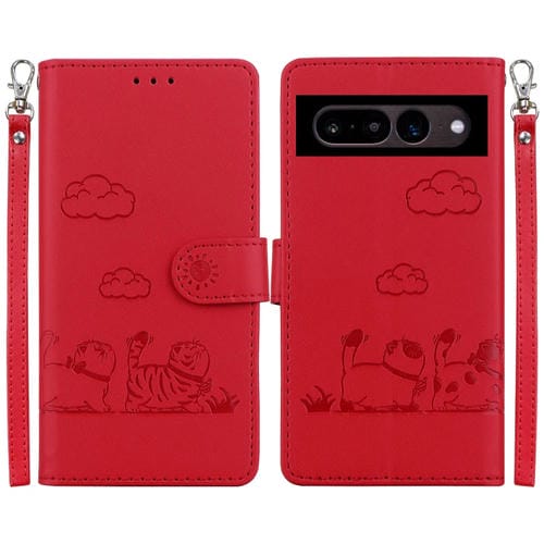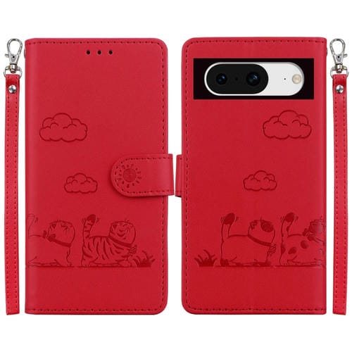 Funda de Cuero Rfid para Google Pixel 8 Pro con Diseño de Gatos (Rojo)