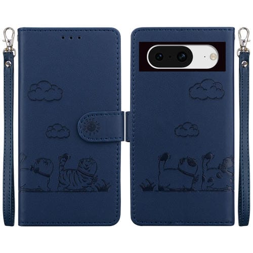Funda de Cuero Rfid para Google Pixel 8 Pro con Diseño de Gatos (Azul)