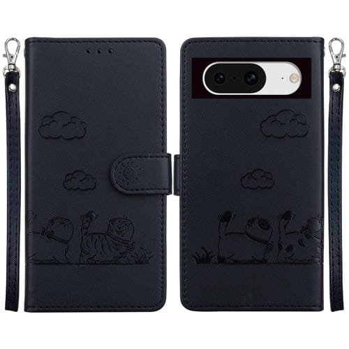 Funda de Cuero Rfid para Google Pixel 8A con Diseño de Gatos (Negra)