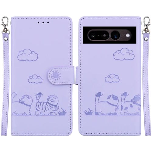 Funda de Cuero Rfid para Google Pixel 7 con Diseño de Gatos (Morado)
