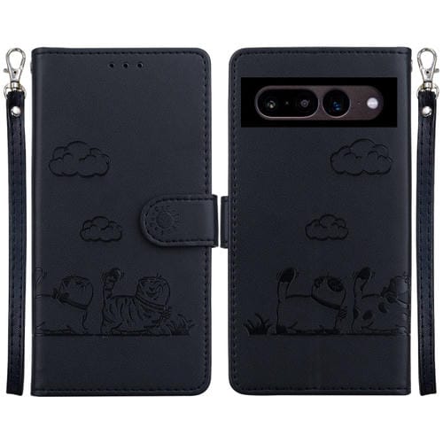 Funda de Cuero Rfid para Google Pixel 7 Pro con Diseño de Gatos (Negra)