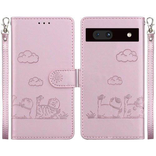 Funda de Cuero Rfid para Google Pixel 7A con Diseño de Gatos (Oro Rosa)