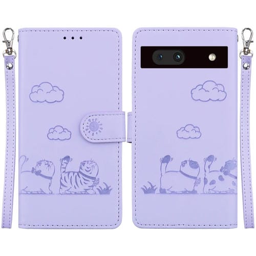 Funda de Cuero Rfid para Google Pixel 7A con Diseño de Gatos (Morado)