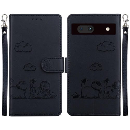 Funda de Cuero Rfid para Google Pixel 7A con Diseño de Gatos (Negra)