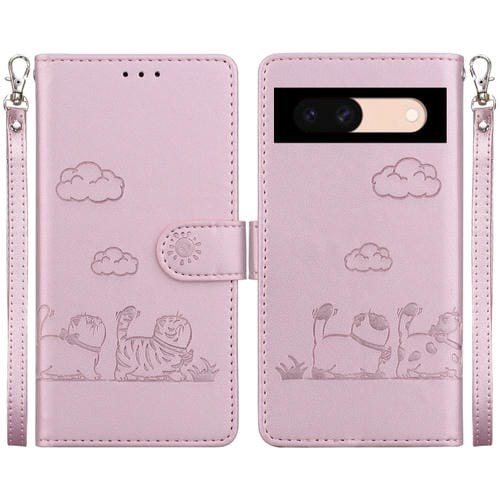 Funda de Cuero Rfid para Google Pixel 7 con Diseño de Gatos (Oro Rosa)