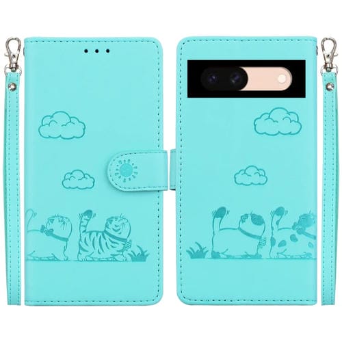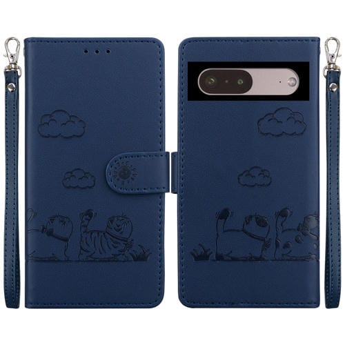 Funda de Cuero Rfid para Google Pixel 7 Pro con Diseño de Gatos (Azul)