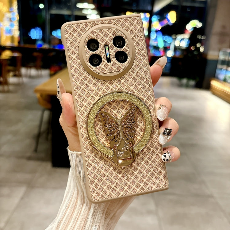 Funda para Teléfono Huawei P50 Pocket con Diseño de Rombos, Diamantes Brillantes y Anillo (Dorado)