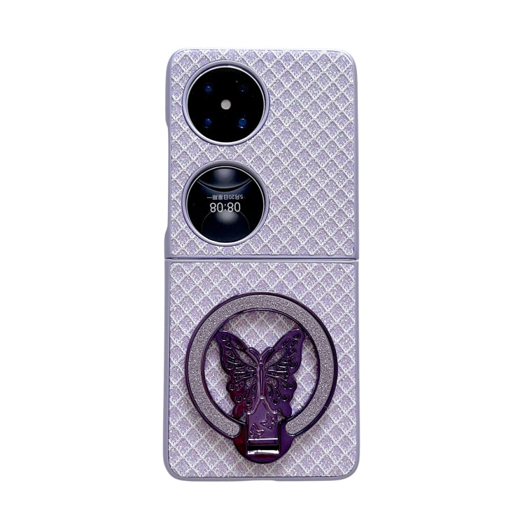 Funda para Teléfono Huawei P50 Pocket con Diseño de Rombos, Diamantes Brillantes y Anillo (Morado)