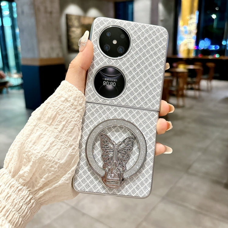Funda para Teléfono Huawei P50 Pocket con Rombos, Diamantes y Soporte para PC (Plateada)