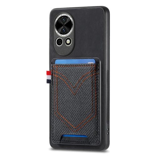 Funda de Piel con Textura Vaquera para Huawei Nova 13 Pro con Ranura para Tarjetas (Negro)