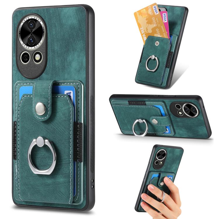 Funda para Teléfono Huawei Nova 13 Pro con Tarjetero y Anillo Tacto de Piel (Verde)