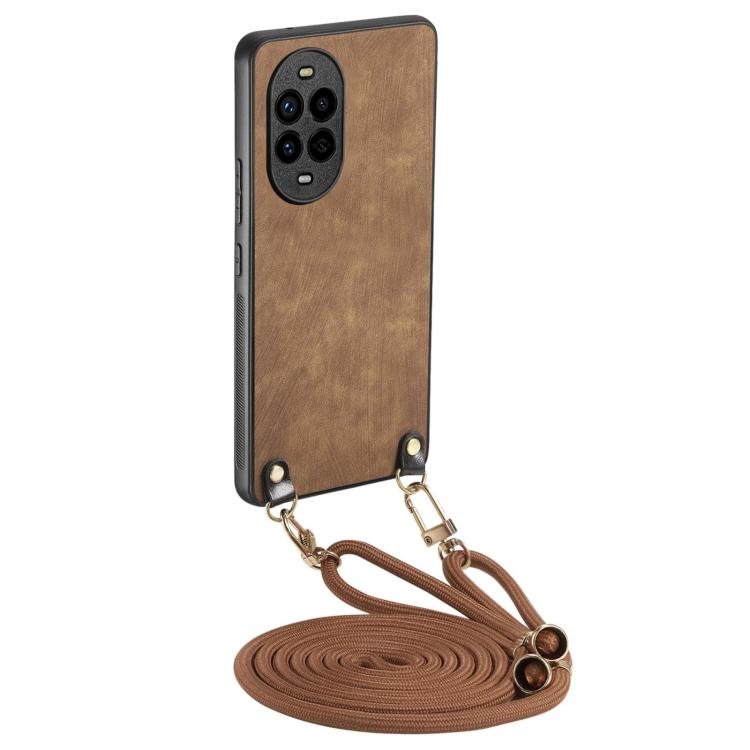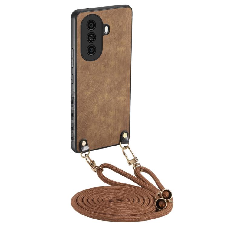 Funda de Cuero Vintage para Huawei Nova 9 con Policarbonato y Correa Cruzada (Marrón)