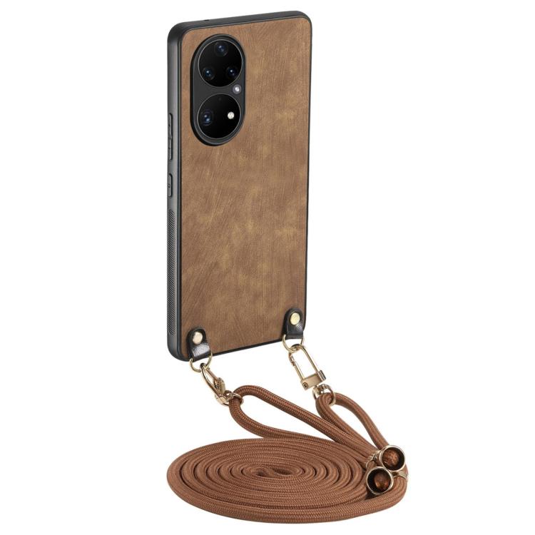 Funda Cuero Vintage Huawei P50 con Parte Trasera Policarbonato y Correa Cruzada (Marrón)