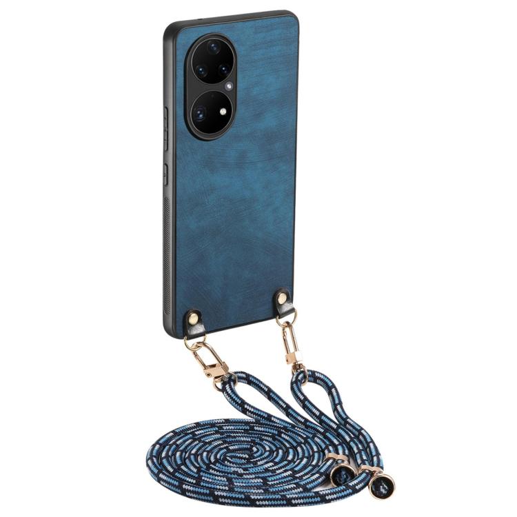 Funda de Cuero Vintage para Huawei P50 Pro con Correa Cruzada (Azul)