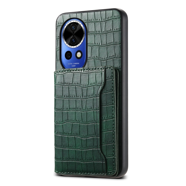 Funda para Huawei Nova 11 con Diseño Bolsa de Tarjeta y Textura de Cocodrilo (Verde)
