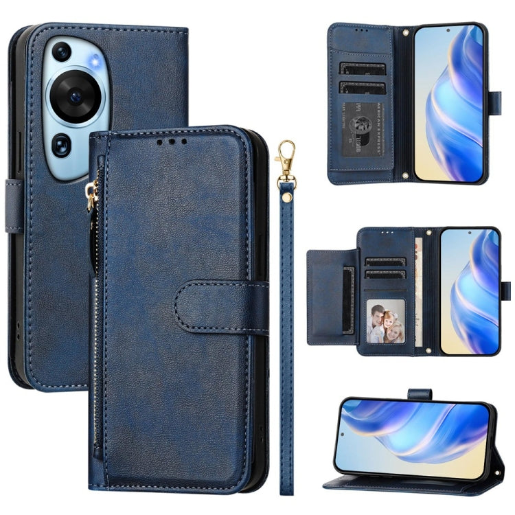 Funda de Cuero con Cremallera y Ranuras para Tarjetas para Huawei Pura 70 Pro/Pura 70 Pro+ (Azul)