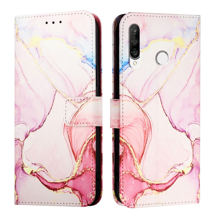 Funda de Cuero con Tapa para Huawei P30 Pt003 con Patrón de Mármol (Oro Rosa)