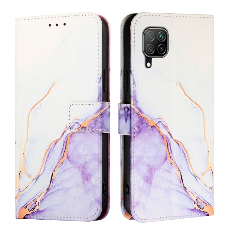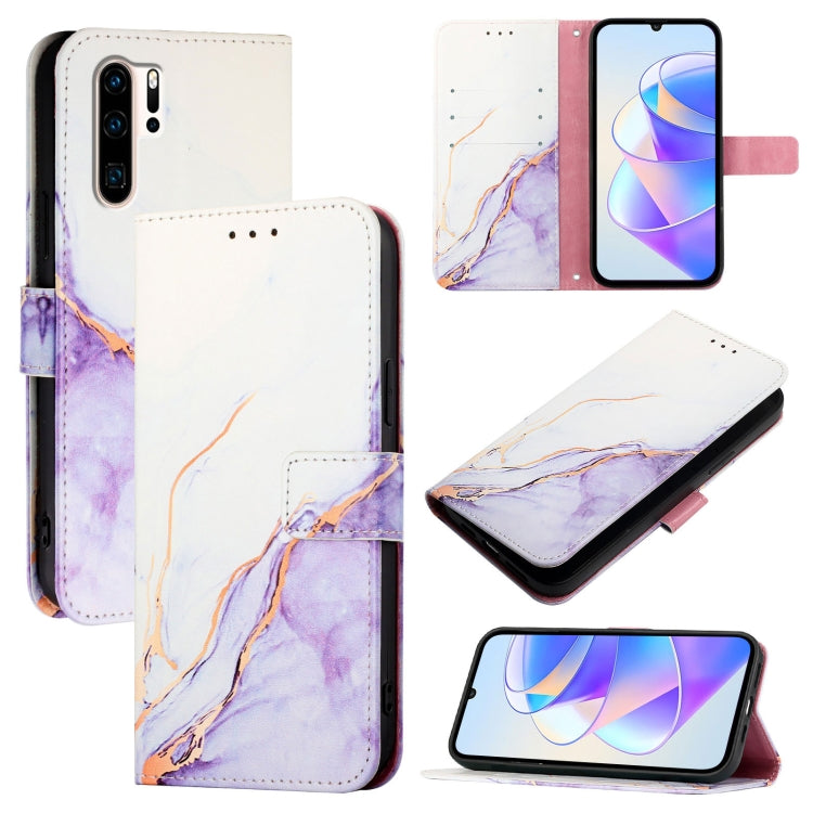 Funda de Cuero con Tapa para Huawei P30 Pt003 con Patrón de Mármol (Blanco Púrpura)