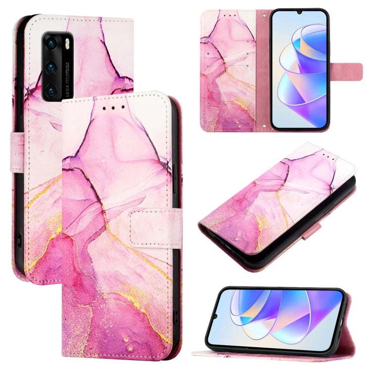 Funda de Cuero con Tapa para Huawei P60 Art Pt003 con Patrón de Mármol (Rosa Púrpura Dorado)