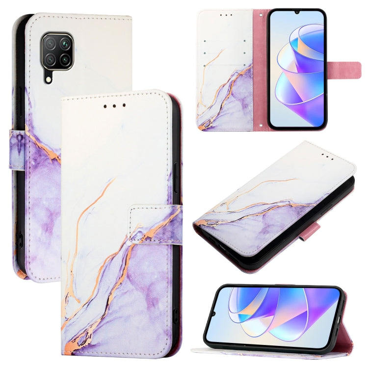Funda de Cuero con Tapa para Huawei P40 Lite / Nova 6 Se Pt003 con Patrón Mármol (Blanco Púrpura)