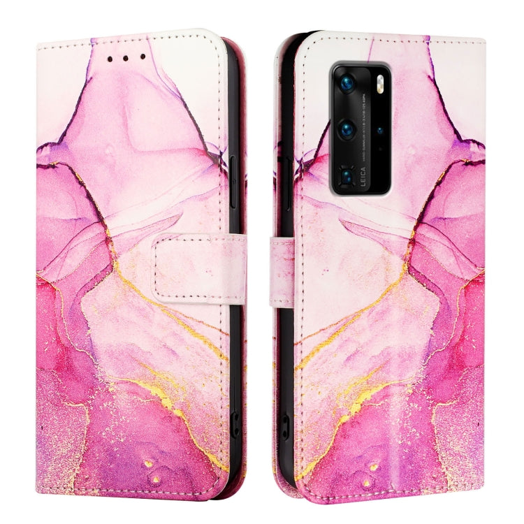 Funda de Cuero con Tapa para Huawei P40 Pt003 con Patrón de Mármol (Rosa Púrpura Dorado)