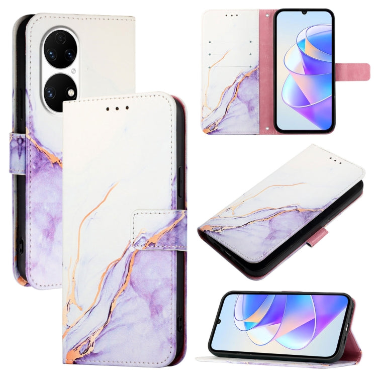 Funda de Cuero para Huawei P50 Pt003 con Tapa y Patrón de Mármol (Ls006 Blanco Púrpura)