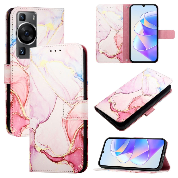 Funda de Cuero con Tapa para Huawei P60 / P60 Pro Pt003 con Patrón de Mármol (Oro Rosa)