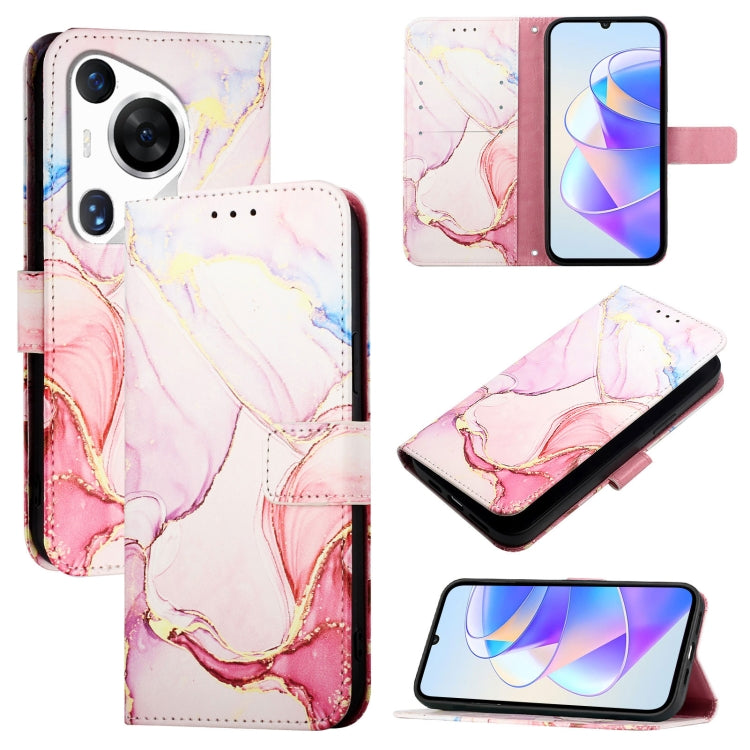 Funda de Cuero con Tapa para Huawei Pura 70 Pro / 70 Pro + Pt003 con Patrón Mármol (Oro Rosa)