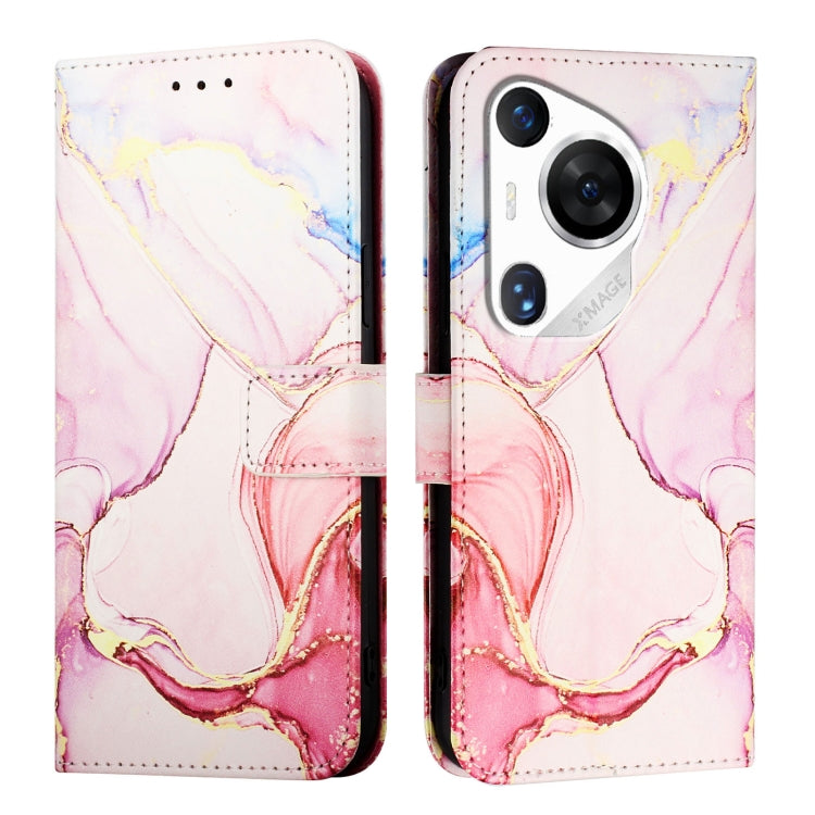 Funda de Cuero para Huawei Pura 70 Pt003 con Tapa y Patrón Mármol (Oro Rosa)