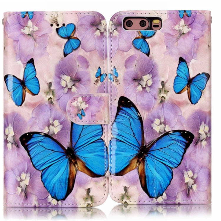 Funda de Cuero para Huawei P10 con Tapa Horizontal, Mariposa Morada en Relieve, Soporte y Ranuras