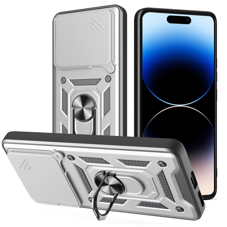 Funda para Teléfono Itel P55 4G de TPU y PC con Cubierta Deslizante para Cámara (Plateada)