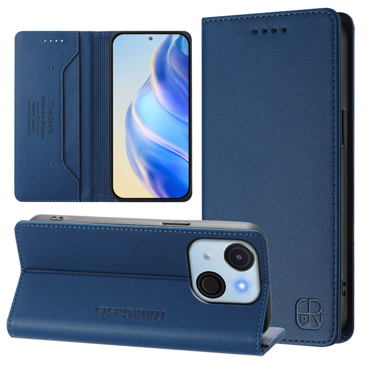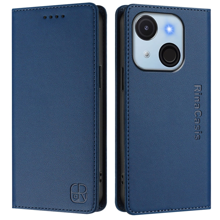 Funda de Cuero Rfid con Doble Pliegue y Succión Magnética para Teléfono Itel P55+ Rc01 (Azul Oscuro)