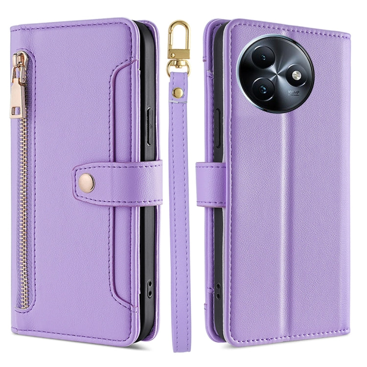 Funda de Cuero Tipo Billetera con Cremallera y Textura de Oveja para Itel S24 4G (Morado)