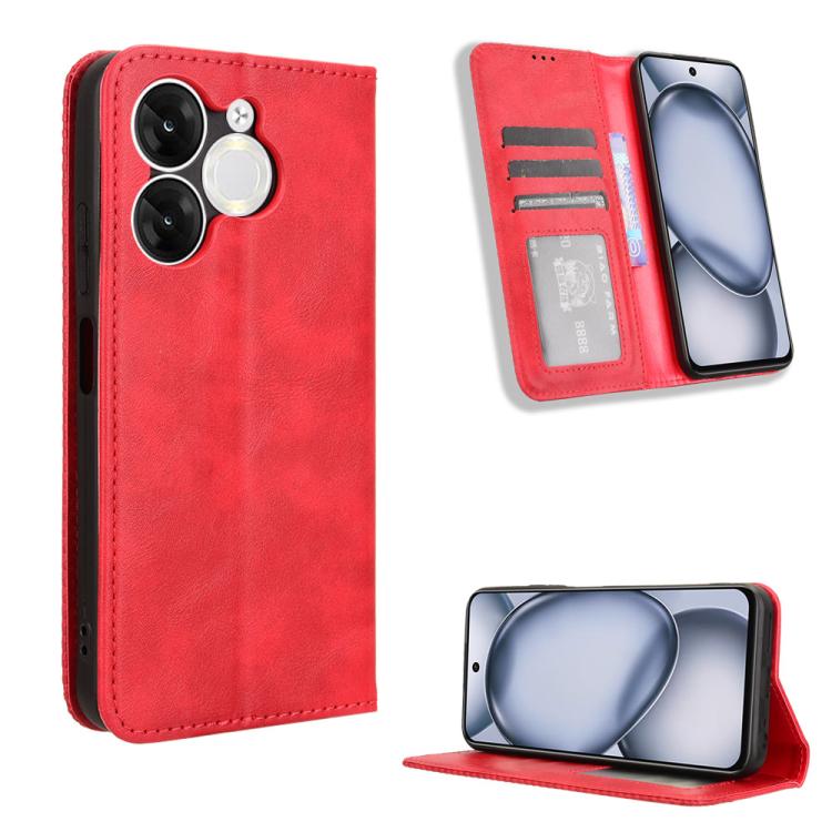 Funda de Cuero Itel A80 4G con Textura Retro y Hebilla Magnética (Rojo)